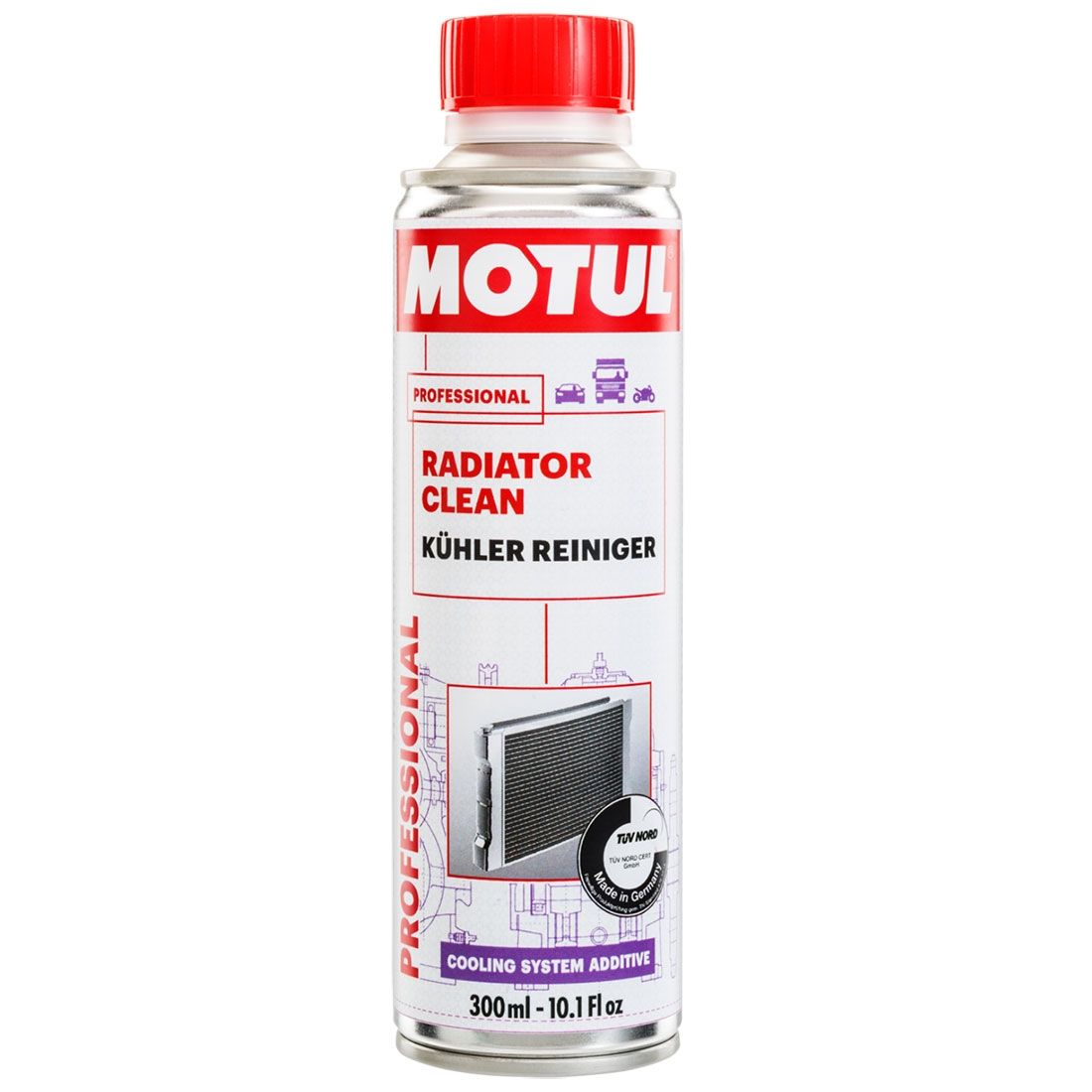 MOTUL RADIATOR CLEAN, añadido al circuito de refrigeración del motor antes de realizar el cambio del refrigerante, permite: • Eliminar las acumulaciones de todo el circuito de refrigeración derivadas de las condiciones de utilización. • Limpiar todo el sistema de refrigeración. • Disolver y eliminar las incrustaciones y los lodos del radiador. • Mejorar el rendimiento de las válvulas, los termostatos y las bombas de agua. • Reducir la temperatura del motor.